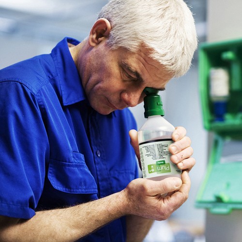 Augenspülflaschen mit 0,9 % Natriumchloridlösung zum Ausspülen von Fremdkörpern wie z.B. Staub, Schmutz, Splitter u.ä.
